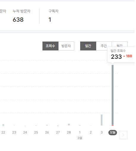 블로그 초보자로선 왜 늘어났는지 이유를 몰라 카카오톡에 문의 했더니 [허리와 등근육] https://m.search.daum.net/search?nil_suggest=btn&w=tot&DA=SBC&q=%ED%97%88%EB%A6%AC%EC%99%80+%EB%93%B1%EA%B7%BC%EC%9C%A1 이란 글이 노출되어서 그렇다고 한다.